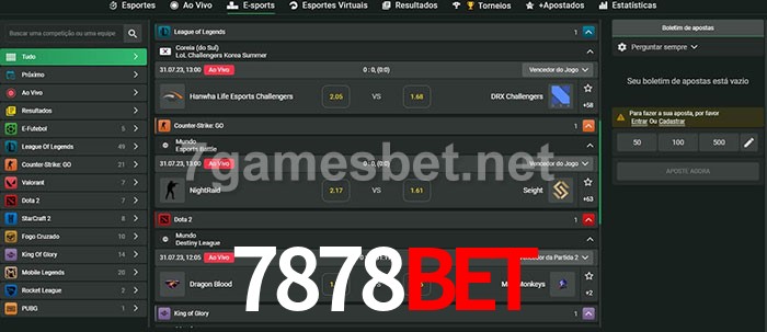 O 7878bet oferece uma grande seleção de opções de apostas em e-sports com probabilidades competitivas